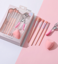 Ideal para crear los mejores looks de maquillaje como un profesional. Set de brochas con cerdas sintéticas que combinan la uniformidad precisa y natural, permitiendo que los productos se difuminen sobre la piel de forma suave y uniforme, encrespador ayuda a tener tusn pestañas risadas y beauty blender ideal para aplicar base y corrector._x000D_