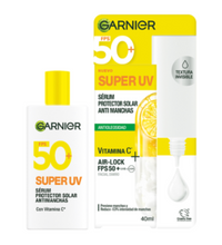 Garnier Super Uv Protector Solar Fluido Facial Diario, brinda una doble acción para tu piel mientras protege del sol gracias al FPS 50+ , te aporta luminosidad gracias a la vitamina C que actúa como antioxidante y combate las manchas causadas por el Sol. Super Uv te ofrece una protección solar de amplio espectro vs los rayos UVB / UVA.